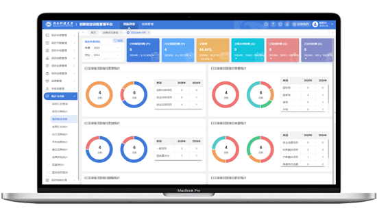 可視化統(tǒng)計與分析項目、經(jīng)費、成果等關(guān)鍵數(shù)據(jù),為管理決策提供客觀、科學(xué)的數(shù)據(jù)支撐??梢绘I導(dǎo)出高基表661、國家級與省級大學(xué)生創(chuàng)新創(chuàng)業(yè)訓(xùn)練計劃立項項目匯總表等國家上報所需數(shù)據(jù),有效減輕數(shù)據(jù)統(tǒng)計和上報的負(fù)擔(dān)。