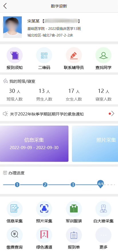 線上預(yù)報名、迎新信息發(fā)布、預(yù)選宿舍/軍訓(xùn)服裝?