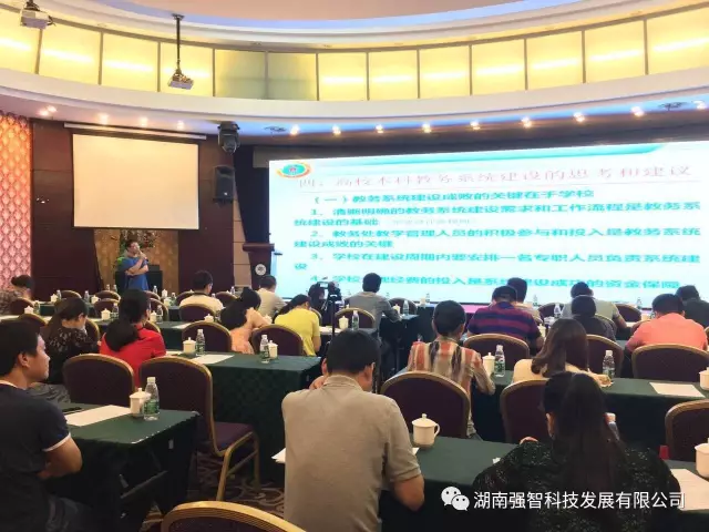 楊玉林先生還結(jié)合公司的發(fā)展理念對(duì)未來(lái)的教務(wù)信息化發(fā)展趨勢(shì)做了預(yù)測(cè)并發(fā)表了自己獨(dú)到的見解,簡(jiǎn)單介紹了公司的使命和未來(lái)發(fā)展方向。并且介紹了公司研發(fā)的教務(wù)信息化產(chǎn)品的管理特色、安全特色、服務(wù)特色等。與大家分享了如何通過“做好三個(gè)保障,抓住五個(gè)重點(diǎn)”來(lái)理性地構(gòu)建適合學(xué)校發(fā)展的教務(wù)系統(tǒng),增強(qiáng)了各高校對(duì)教務(wù)信息化建設(shè)的思路與意識(shí)。并表示強(qiáng)智科技有能力也有信心為各高校提供各種適應(yīng)學(xué)校需求的教務(wù)信息化的產(chǎn)品和服務(wù),得到了各位與會(huì)人員的一致認(rèn)可和肯定。