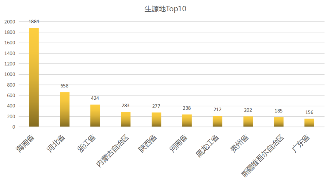 生源地前10中,大多數(shù)省份都是來自“北方”,看來,北方的小伙伴們特別想來南方感受一下“四季如夏”的溫暖。