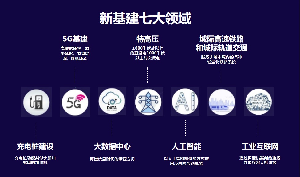 新基建重點(diǎn)覆蓋了七大領(lǐng)域,包含5G基建、大數(shù)據(jù)中心、人工智能、工業(yè)互聯(lián)網(wǎng)、特高壓、城際高鐵和軌道交通、新能源汽車充電樁。在此基礎(chǔ)上,可以將新基建總結(jié)概述為三大“網(wǎng)絡(luò)”框架:
