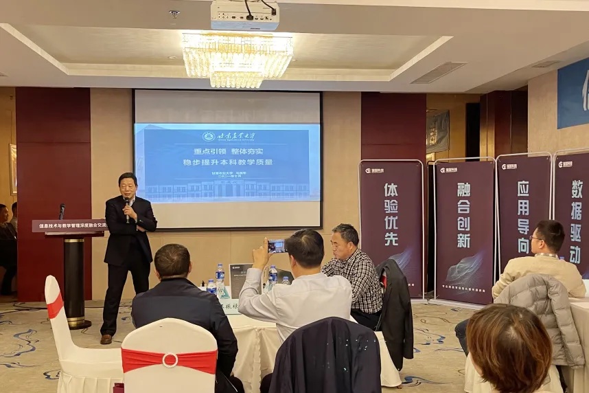 甘肅農(nóng)業(yè)大學(xué)教務(wù)處處長(zhǎng)馬國(guó)軍、西北師范大學(xué)教務(wù)處副處長(zhǎng)王興、蘭州城市學(xué)院教務(wù)處副處長(zhǎng)王振祿、強(qiáng)智科技產(chǎn)品總監(jiān)彭鵬分別作主題報(bào)告。