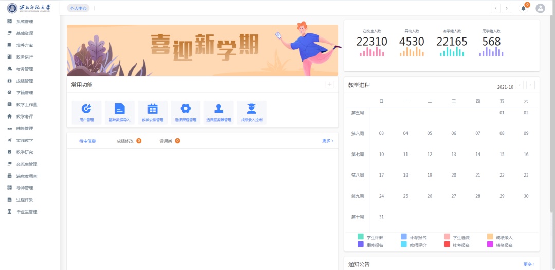 西北師范大學(xué)通過新綜合教務(wù)管理系統(tǒng)在學(xué)校教育教學(xué)方面取得了顯著的成效。