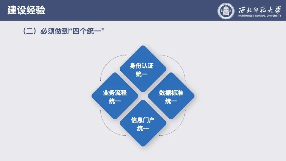 學(xué)校把綜合教務(wù)系統(tǒng)的建設(shè)作為助力“雙一流”大學(xué)建設(shè)的平臺之一;作為助力本科教學(xué)全面改革實施的保障平臺之一;也是“十三五”期間實施教育信息化工程項目中的子項目,推動信息化背景下的現(xiàn)代大學(xué)治理體系變革。2、做到“四個統(tǒng)一”和“四個共享”