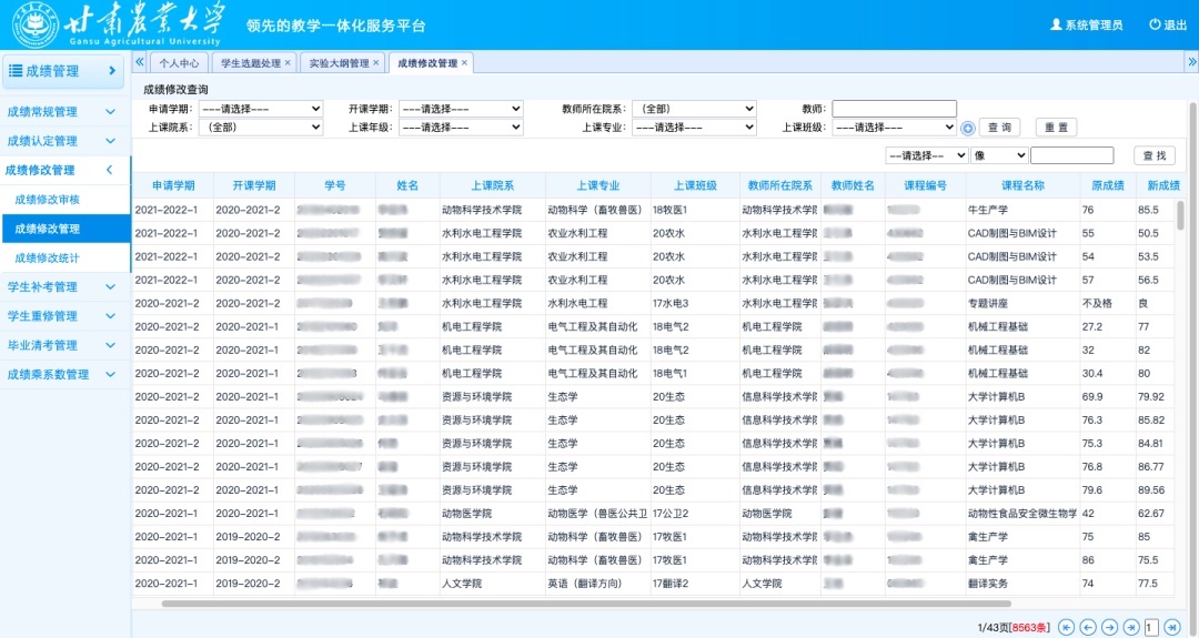強(qiáng)智科技結(jié)合甘肅農(nóng)業(yè)大學(xué)的實(shí)際業(yè)務(wù)需求以及信息化建設(shè)現(xiàn)狀定制開(kāi)發(fā)特色功能,改變了學(xué)校以往的教育教學(xué)模式,收獲了校領(lǐng)導(dǎo)、教務(wù)處老師的多方肯定和認(rèn)同,幫助學(xué)校實(shí)現(xiàn)了多個(gè)“變化”。