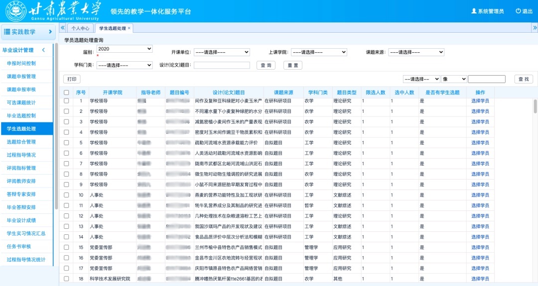 隨著教育信息化進(jìn)程的不斷推進(jìn),全面提升人才培養(yǎng)能力,深化教育教學(xué)改革的態(tài)勢(shì)也愈發(fā)急迫。在探索教育改革方面,甘肅農(nóng)業(yè)大學(xué)始終走在前沿,并在建設(shè)世界一流大學(xué)的本科教育上進(jìn)行了前瞻布局,在建設(shè)思路上結(jié)合農(nóng)林特色專(zhuān)業(yè),發(fā)揮學(xué)校自身的優(yōu)勢(shì),推動(dòng)教學(xué)管理系統(tǒng)建設(shè)的落地執(zhí)行。1、明確建設(shè)思路,穩(wěn)扎穩(wěn)打