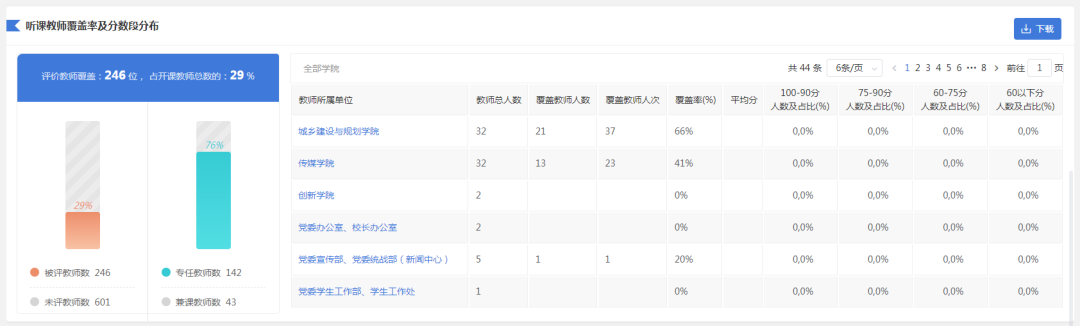 ? 聽課教師覆蓋率及分?jǐn)?shù)段分布