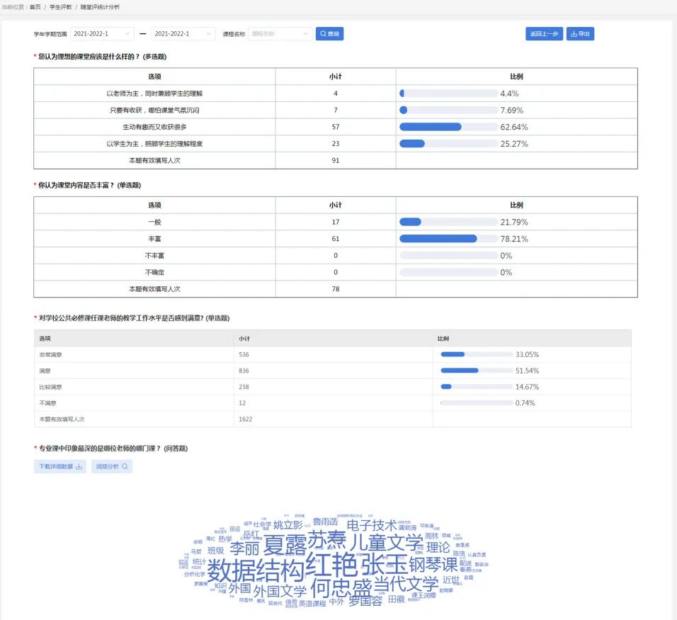? 教師詞云、課程詞云等,可下載詳細(xì)數(shù)據(jù)和詞云分析