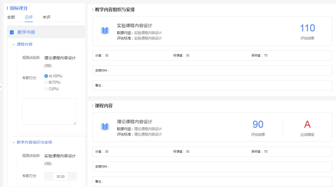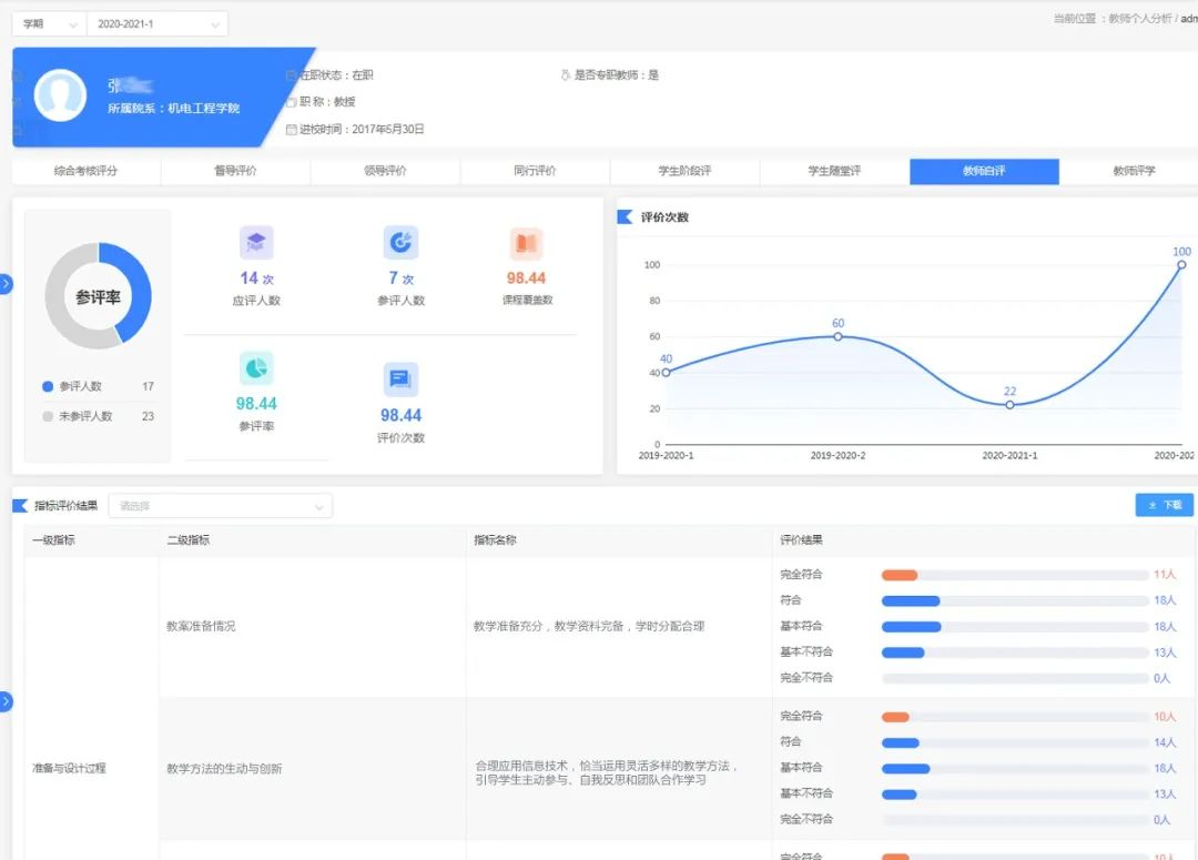 系統(tǒng)可查看教師自評和教師評學(xué)的綜合分析,例如: