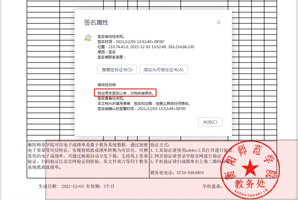 加蓋電子簽章和可信時(shí)間戳,采用國(guó)際和國(guó)密雙算法加密,保障成績(jī)單、在讀證明等文件的真實(shí)性、完整性,任何改動(dòng)能被發(fā)現(xiàn),有效防篡改,老師超級(jí)放心!