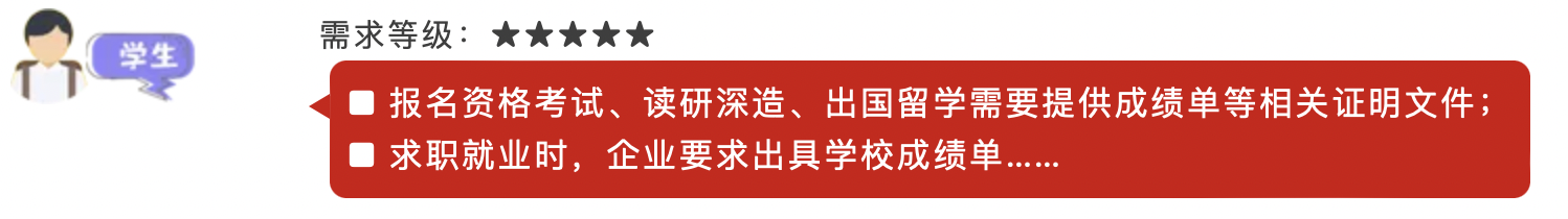 過(guò)去:學(xué)生報(bào)名資格考試、讀研深造、出國(guó)留學(xué)、求職就業(yè)等等,不同階段都對(duì)成績(jī)單認(rèn)證有不同的需求,特別是出國(guó)留學(xué)、求職找工作時(shí),時(shí)間緊,路途遠(yuǎn),趕回學(xué)校,耗費(fèi)時(shí)間長(zhǎng),“真心累,想躺平”!