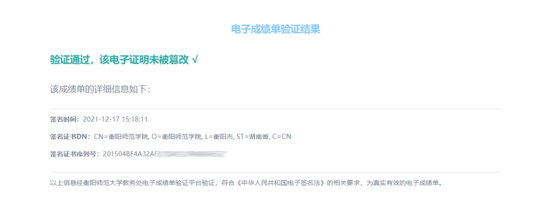 企業(yè)等相關(guān)機(jī)構(gòu)可將學(xué)生提供的電子成績(jī)單上傳至學(xué)校指定的驗(yàn)證網(wǎng)站進(jìn)行驗(yàn)證,方便快捷,權(quán)威可信。