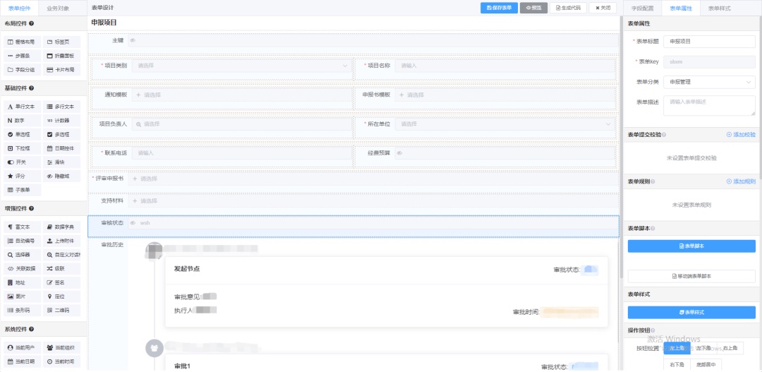 另外,項目申報管理系統(tǒng)還采用了低代碼開發(fā)技術(shù),管理人員可自主進行流程表單以及頁面的設計,一鍵拖拉拽組件,配置復雜流程,滿足項目申報需要。
