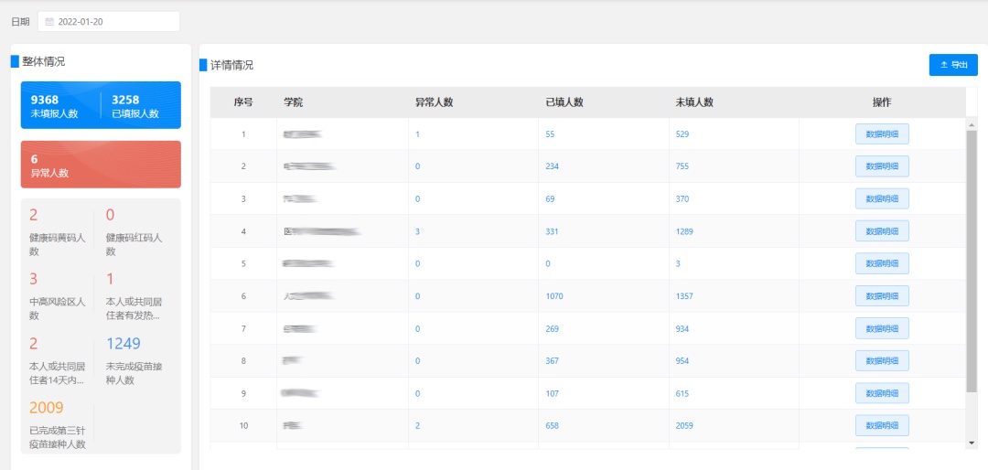 ? 提供統(tǒng)一的信息收集模版,幫助輔導(dǎo)員統(tǒng)計與查看填報信息和異常情況,并提前預(yù)警。