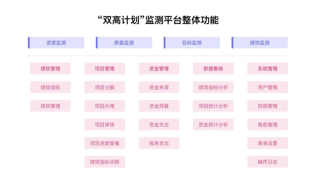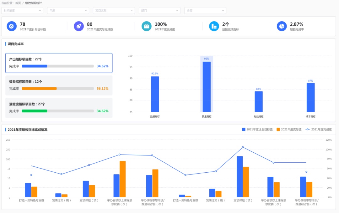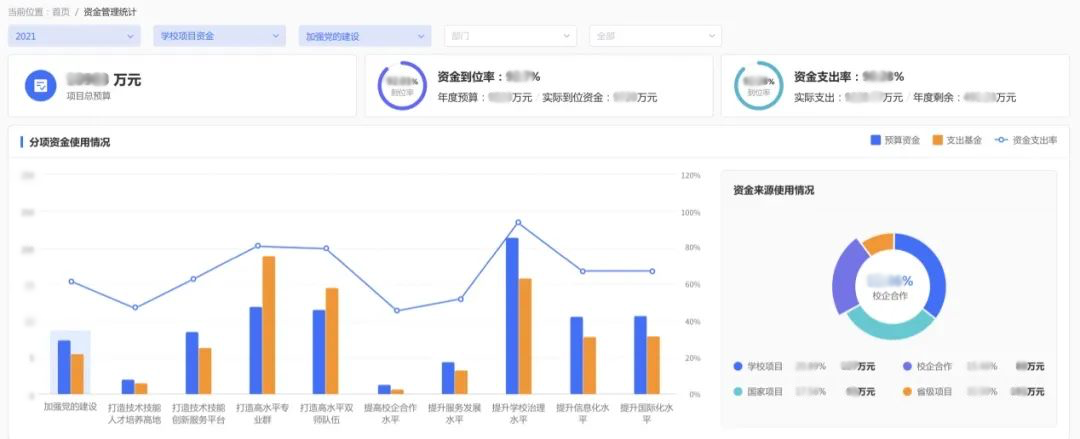 平臺主要包含績效管理、項目管理、資金管理、文檔管理、數(shù)據(jù)看板等核心模塊,助力推進學校“雙高計劃”建設工作的信息化。