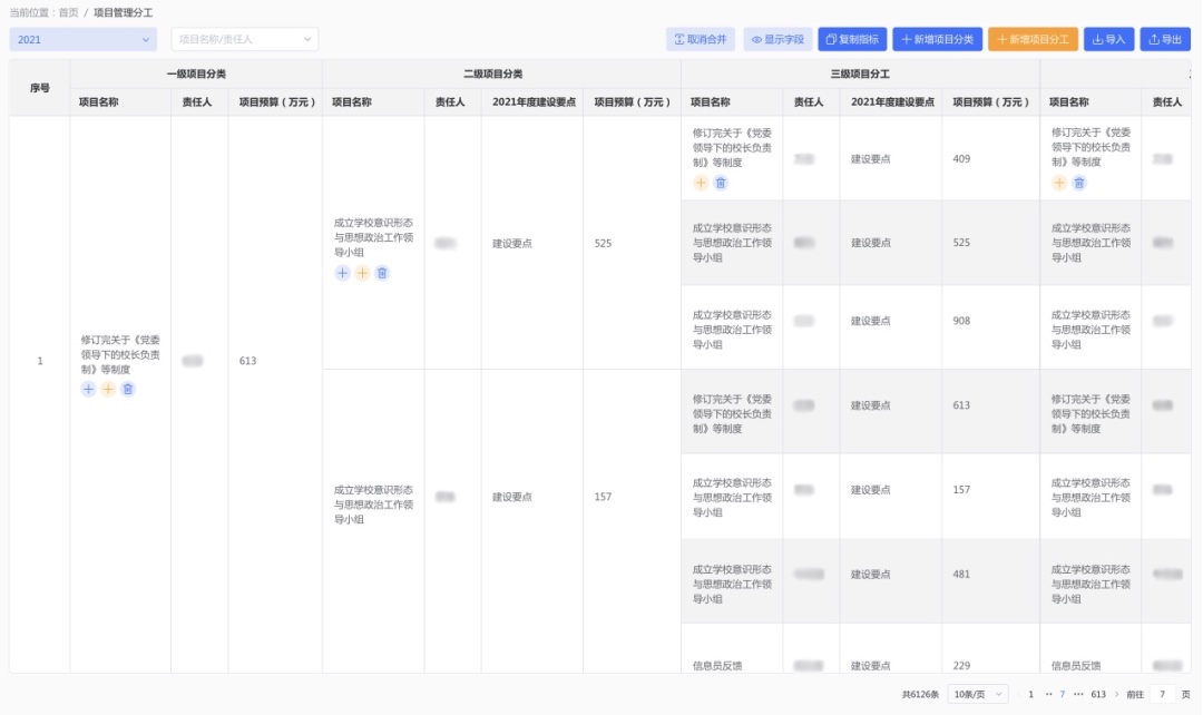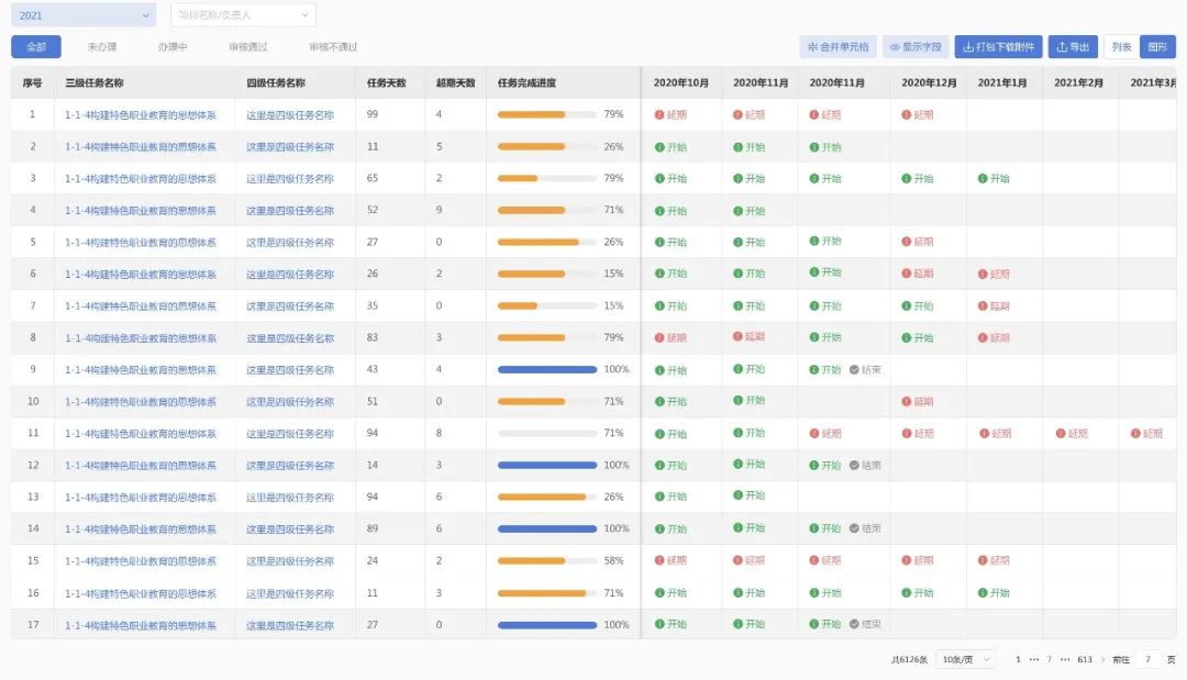面對學校“雙高計劃”的多層級項目任務,項目小組需要對任務進行分工管理,責任到人,保障項目順利實施。3、項目分解完成后對任務進度實時跟進