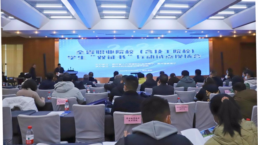 貴州省人力資源社會(huì)保障廳副廳長徐海濤表示,通過實(shí)施‘雙證書’行動(dòng),充分發(fā)揮了評價(jià)的‘指揮棒’作用,強(qiáng)化了職業(yè)院校培養(yǎng)高技能人才基礎(chǔ)性作用,促進(jìn)了就業(yè)創(chuàng)業(yè),壯大了貴州省高技能人才總量。2022年12月16日下午,由貴陽市人力資源和社會(huì)保障局、貴陽市教育局主辦,貴州水利水電職業(yè)技術(shù)學(xué)院承辦的“全省職業(yè)院校(含技工院校)學(xué)生‘雙證書’行動(dòng)試點(diǎn)現(xiàn)場會(huì)”在貴州水利水電職業(yè)技術(shù)學(xué)院成功舉行,并在各市(州)人社局、教育局,各職業(yè)院校(含技工院校)會(huì)議室設(shè)立了分會(huì)場。會(huì)議由省職業(yè)技能鑒定考評指導(dǎo)中心主任萬遠(yuǎn)茂主持。