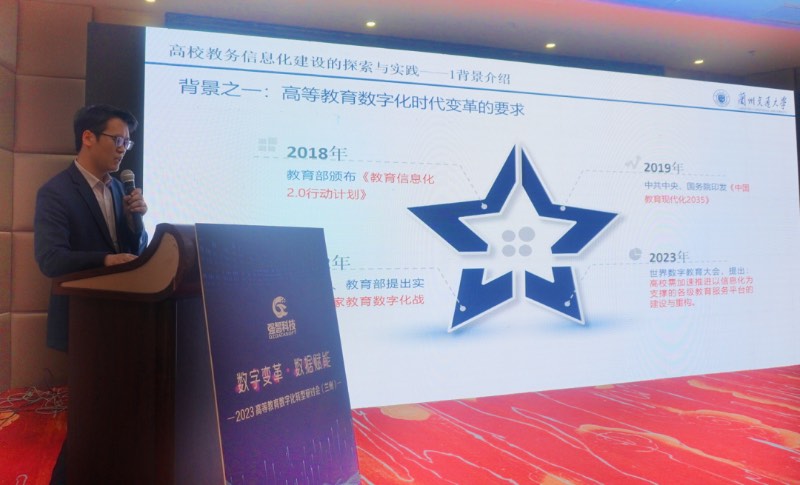蘭州交通大學教務處副處長馬元琳在報告中表示,在國家教育數(shù)字化戰(zhàn)略行動的背景下,推進學校的數(shù)字化變革是發(fā)展所驅。馬元琳向來賓們介紹了高校教務信息化建設的背景、思路和實踐,對教務信息化平臺進行了全面的更新迭代,以滿足學校數(shù)字化建設的需要。