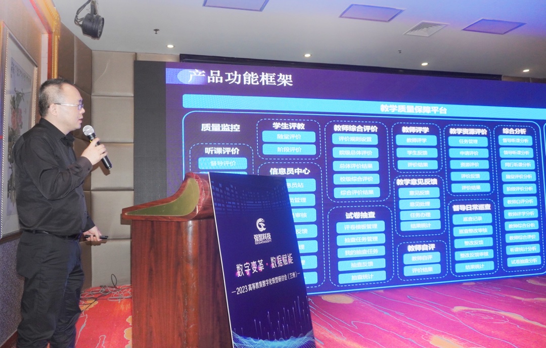 此外,強智科技產品總監(jiān)李兵、成旺分別發(fā)表題為《基于數(shù)據(jù),面向服務——新一代智慧教務系統(tǒng)建設與實踐》、《強智科技教學質量保障平臺》主題報告,向與會嘉賓分享了強智科技在推動高校教育數(shù)字化轉型發(fā)展的實踐經驗以及取得的建設成果。