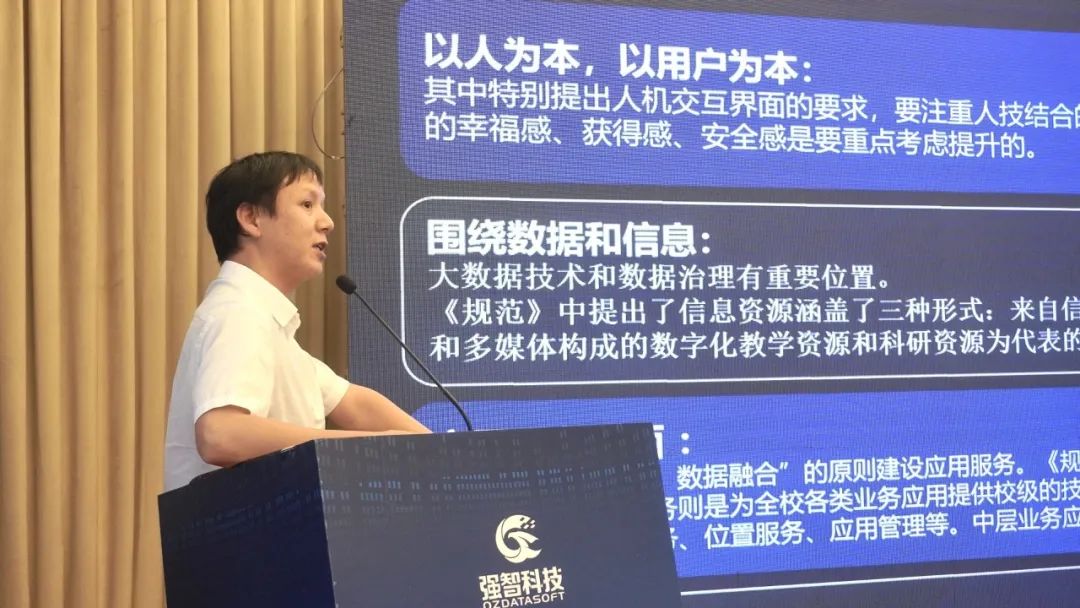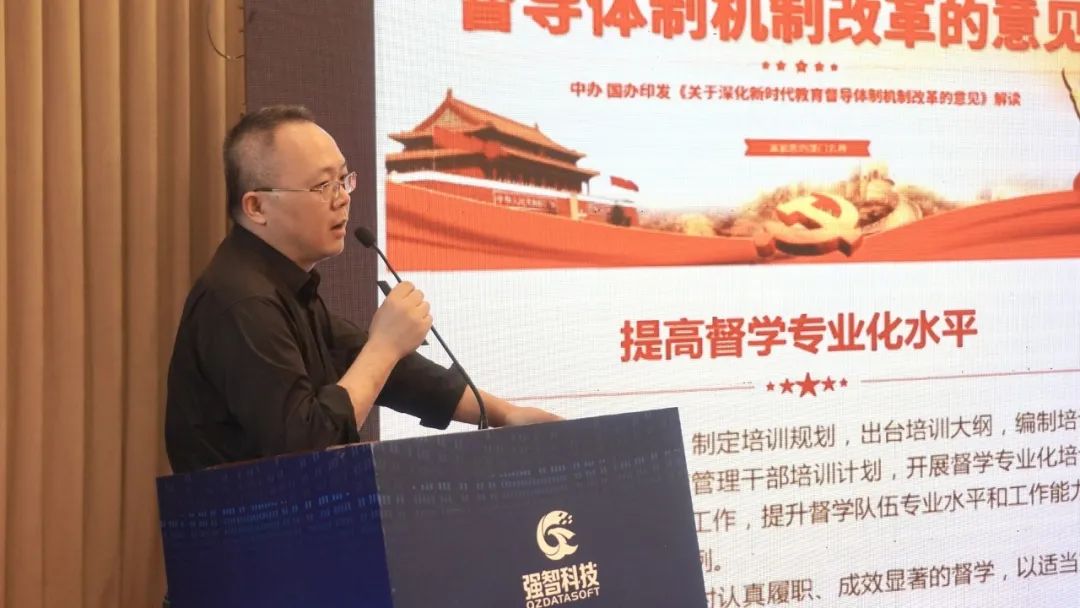 強智科技產品總監(jiān)成旺向各位領導和老師匯報強智新一代教學質量保障平臺,基于數(shù)字化轉型的時代背景,提供高校在教學質量保障方面的解決方案。