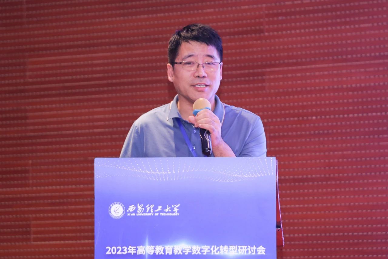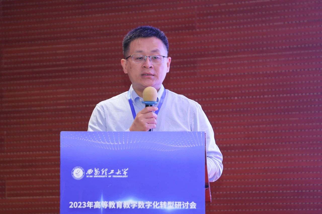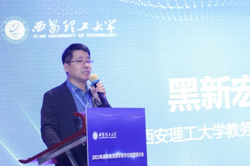西安理工大學(xué)教務(wù)處處長(zhǎng)黑新宏在致辭中代表會(huì)議指導(dǎo)單位對(duì)與會(huì)嘉賓表示誠(chéng)摯的歡迎。他表示數(shù)字化轉(zhuǎn)型不僅僅是一次技術(shù)的更新,更是一場(chǎng)教育理念的更新,是一種創(chuàng)新的思維方式。希望通過(guò)今天的研討和交流,為陜西省高等教育教學(xué)數(shù)字化轉(zhuǎn)型建設(shè)貢獻(xiàn)一份微薄之力,提供一個(gè)共享經(jīng)驗(yàn)、共同成長(zhǎng)的平臺(tái),找到更多實(shí)際可行的路徑,讓數(shù)字教育在陜西的土地上開(kāi)花結(jié)果。
