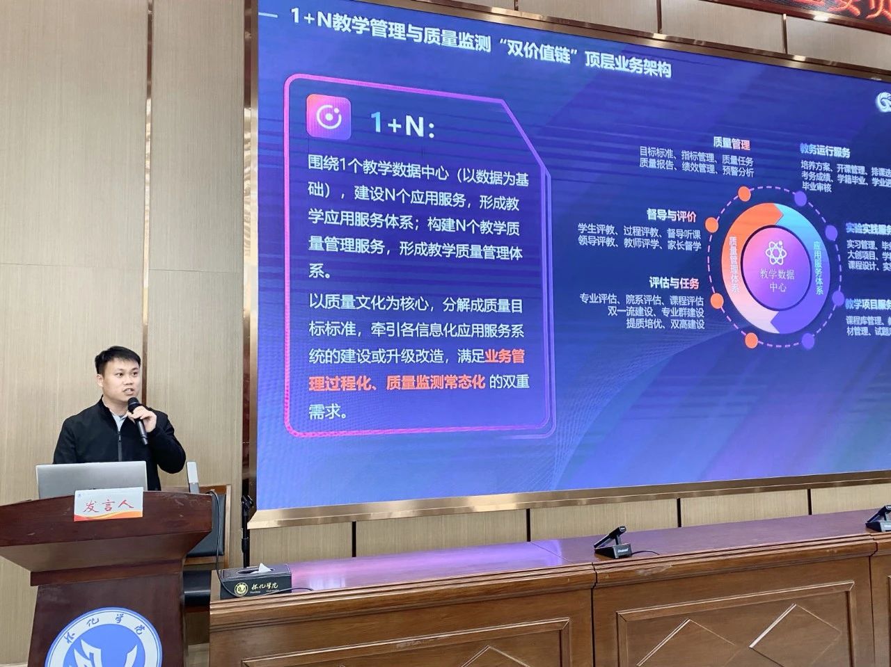 向各位領(lǐng)導(dǎo)和老師介紹了強智科技的教學(xué)管理解決方案。在數(shù)字時代下的教學(xué)管理中,強智科技以構(gòu)建“教務(wù)管理和微應(yīng)用體系+教學(xué)質(zhì)量管理體系+教學(xué)大數(shù)據(jù)分析+教學(xué)服務(wù)門戶”于一體的教學(xué)數(shù)字化轉(zhuǎn)型升級解決方案,驅(qū)動教育教學(xué)管理變革,為高校數(shù)字化發(fā)展提供全新動力。