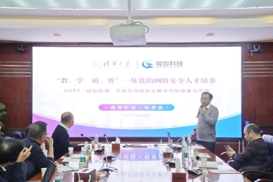 強智科技總經(jīng)理何勇波先生作了題為《基于對抗實戰(zhàn)的網(wǎng)絡(luò)安全教學(xué)—DART偵攻防溯平臺在網(wǎng)絡(luò)安全教學(xué)中的探索與實踐》的主題報告。