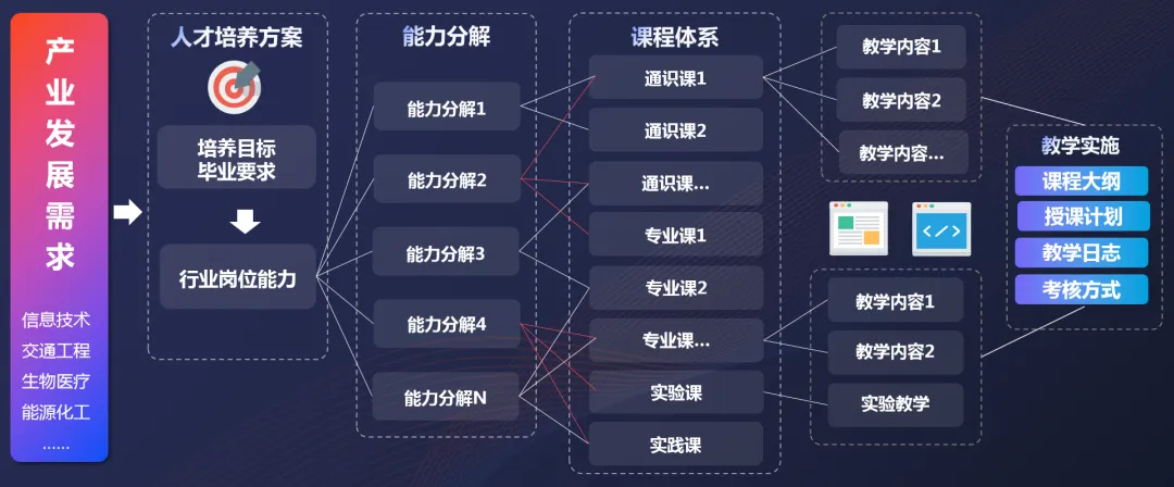 ? 基于OBE理念,從人才培養(yǎng)頂層設(shè)計入手,實現(xiàn)行業(yè)人才需求、培養(yǎng)規(guī)格、畢業(yè)要求、課程體系、教學(xué)安排、單元設(shè)計的銜接貫通和過程監(jiān)測,明確學(xué)生畢業(yè)時應(yīng)具備的能力,組織教學(xué)各個環(huán)節(jié),分析學(xué)生學(xué)習(xí)的產(chǎn)出,反向設(shè)計教學(xué)培養(yǎng)目標(biāo),開展教學(xué)實踐活動。
