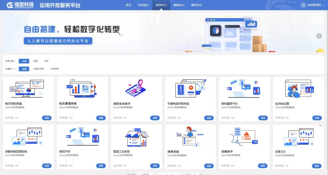 幫助學(xué)校建設(shè)智慧校園一體化服務(wù)平臺,通過統(tǒng)一的應(yīng)用開放服務(wù)體系建設(shè),實現(xiàn)基于微服務(wù)架構(gòu)的標(biāo)準(zhǔn)化、規(guī)范化、增量化的海量應(yīng)用服務(wù)的量產(chǎn)開發(fā),為應(yīng)用開放服務(wù)建設(shè)提供從應(yīng)用開發(fā)、應(yīng)用管理到應(yīng)用運營的全生命周期的應(yīng)用管理與服務(wù)能力。