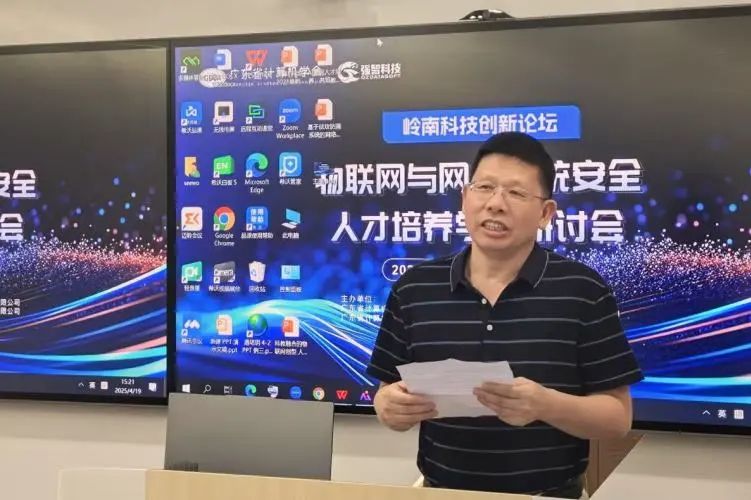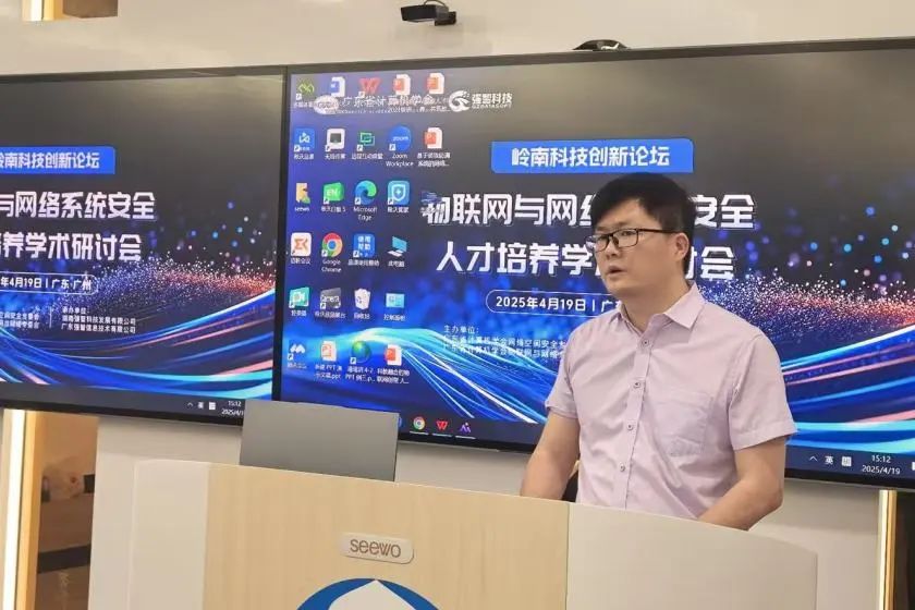 2025年4月19日,由廣東省計算機學會物聯(lián)網(wǎng)與網(wǎng)絡專委會、網(wǎng)絡空間安全專委會聯(lián)合主辦,湖南強智科技發(fā)展有限公司與廣東強智信息技術有限公司承辦的“嶺南科技創(chuàng)新論壇之物聯(lián)網(wǎng)與網(wǎng)絡系統(tǒng)安全人才培養(yǎng)學術研討會”,在廣東廣州順利舉行。來自清華大學、中山大學、暨南大學、華南師范大學、華南理工大學、廣東海洋大學、廣東技術師范大學等近20所高校的專家學者齊聚一堂,共話物聯(lián)網(wǎng)與網(wǎng)絡安全人才培養(yǎng)新模式。會議由廣東省計算機學會物聯(lián)網(wǎng)與網(wǎng)絡專委會秘書長熊建斌教授主持。