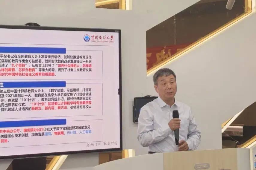 中國海洋大學信息科學與工程學部副部長郭忠文教授帶來了題為《科教融合的物聯(lián)網(wǎng)創(chuàng)新型人才培養(yǎng)模式》的主題報告。通過虛實融合方式,有效解決物聯(lián)網(wǎng)教學中設備昂貴、成本高、場景受限等問題。物聯(lián)網(wǎng)虛實混合教學實驗平臺集設備仿真、人機交互、AI智能識別等多功能于一體,不僅服務于教學,更為學生提供了豐富的工程化實訓項目,有效促進了創(chuàng)新能力和工程實踐能力的協(xié)同提升。