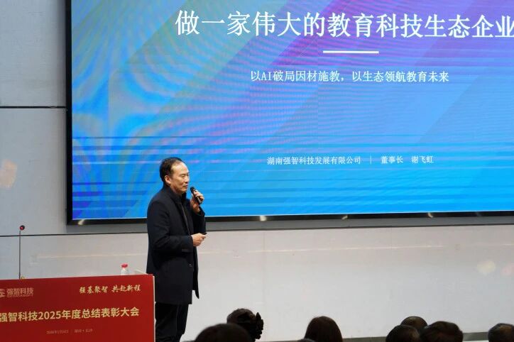 大會伊始,董事長謝飛虹作題為《做一家偉大的教育科技企業(yè)》的企業(yè)發(fā)展戰(zhàn)略分享。他深刻闡釋了公司以成熟智慧教務系統(tǒng)為堅實底座,以人工智能為核心引擎的發(fā)展路徑,致力于構建覆蓋教學、學習、管理、評價全流程的個性化培養(yǎng)生態(tài)。通過AI深度賦能,打造“智能教務+智能教學+智能評價”一體化戰(zhàn)略生態(tài),助力“規(guī)?;虿氖┙?rdquo;成為現(xiàn)實,切實促進學生成長、助力教師教學、賦能學校管理,矢志成為一家引領行業(yè)發(fā)展的偉大教育科技生態(tài)企業(yè)。